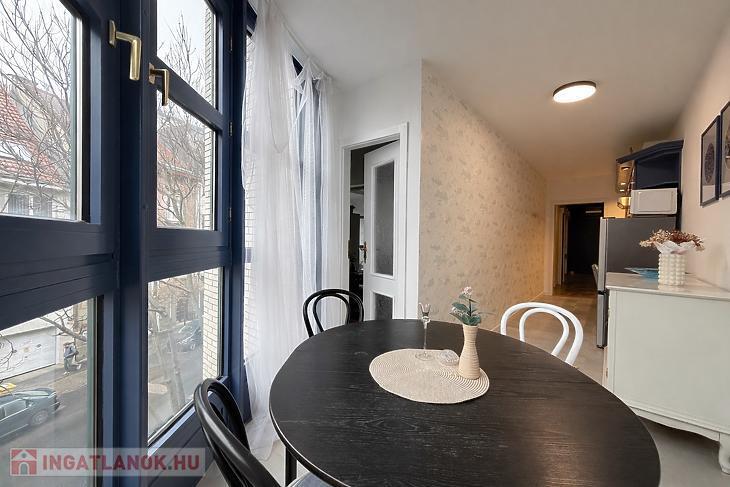 Kiadó a II. kerület közkedvelt részén, Újlakon, a Zsigmond térre néző, jó állapotú lakás egy 90-es években épült, rendezett társasház 3. emeletén. A 65 nm-es ingatlan praktikus elosztású, két külön nyíló szobával, külön konyhával étkezővel, külön WC-vel és fürdőszobával rendelkezik. A lakás kifejezetten világos, sok ablakkal, valamint számos tárolási lehetőséggel. A lakás bútorozott, a ház házközponti fűtéssel rendelkezik, állapota jó, a lakás azonnal költözhető. A bérleti díjon és a közös költségen felül kötelezően fizetendő havi 12.500 Ft, amely tartalmazza a havi egyszeri takarítást.