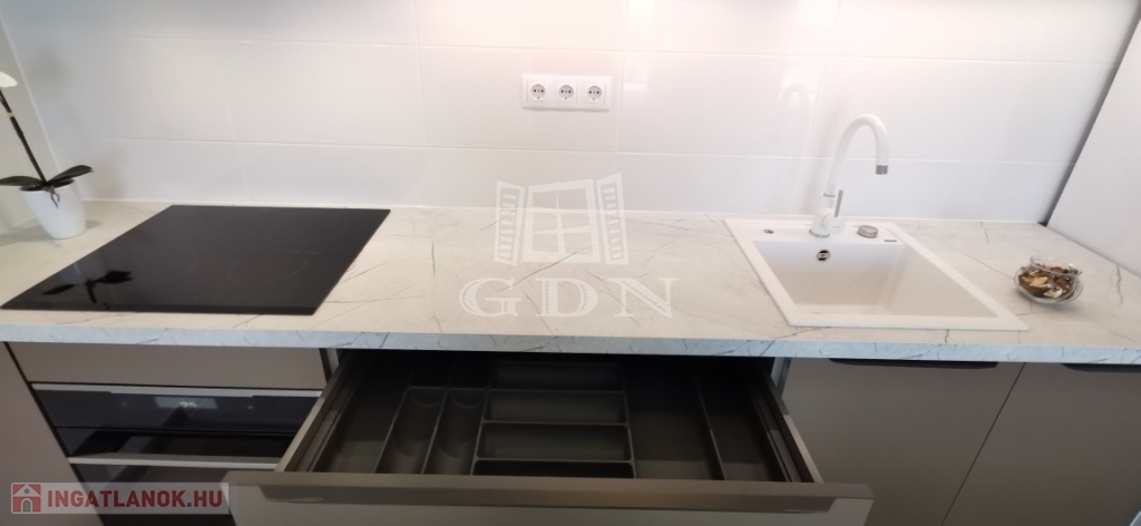 Teljesen gépesített konyha (beépített sütő, főzőlap, mosogatógép, hűtőszekrény)