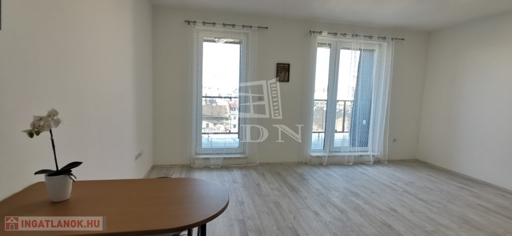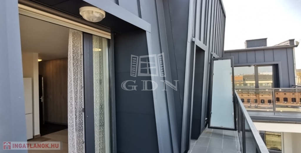 IX. kerület, Sobieski János városrészben kiadó egy 2020-ban átadott, liftes társasház 7. emeletén lévő, 32 nm-es (8 nm-es terasszal), 1 szobás, gépesített, modern lakás.