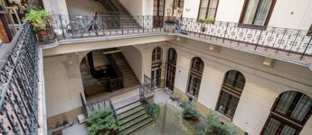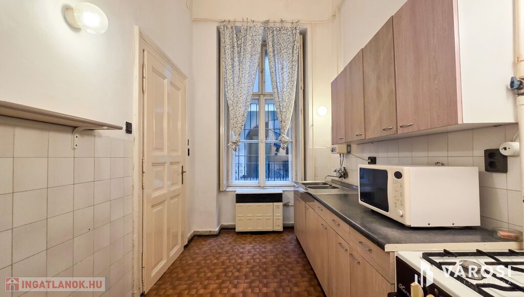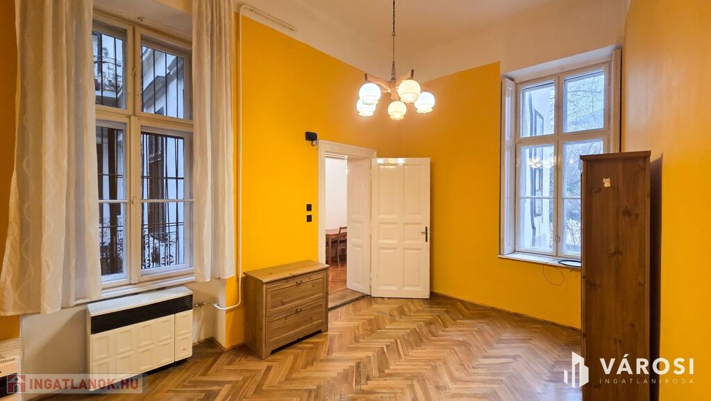 A lakás ablakai a belső és a hátsó udvarra néznek, így a körút forgalmából semmi sem hallatszik be.