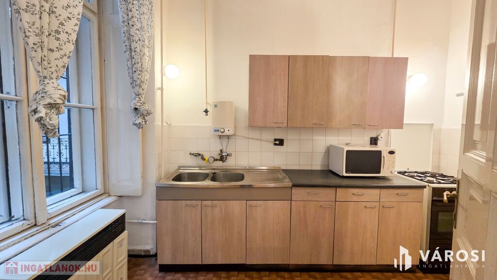 Kiadó a IX. kerületben, a Ferenc körúton egy első emeleti, nappali + hálószobás 50 m2-es lakás.