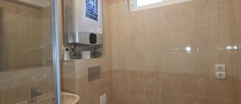 A fűtést gázkazán és felújított, mindhárom szobára meleget adó cserépkályha biztosítja.