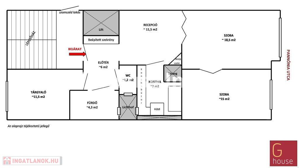 Az ingatlan mind utcai, mind udvari nézetű, így a terek egyszerre világosak és csendesek. Két klíma gondoskodik a komfortos hőmérsékletről az év minden napján.