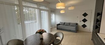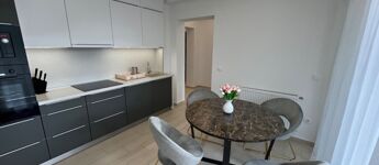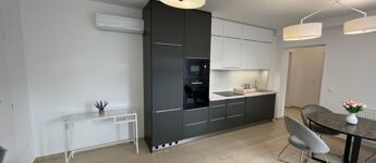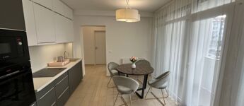 A lakás elrendezése modern és praktikus: 3 tágas, világos szoba, egy elegáns nappali, 2 fürdőszoba és egy amerikai stílusú konyha található benne, mely teljesen felszerelt és berendezett. A kényelmet padlófűtés, klíma és dekorvilágítás teszi teljessé.