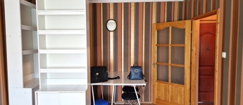 Debrecen Vénkert városrészén a Domokos Lajos utcában kiadó egy 35 nm alapterületű másfél szobás társasházi panel lakás nagyobbik szobája. (18 nm) 1 fő részére.