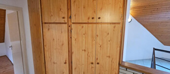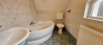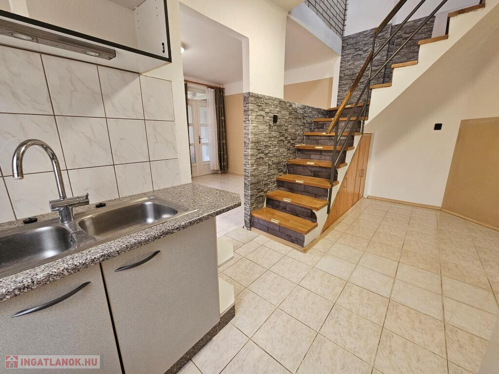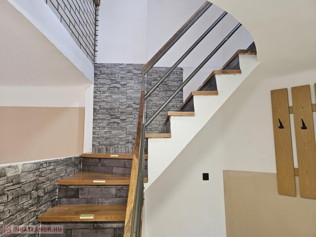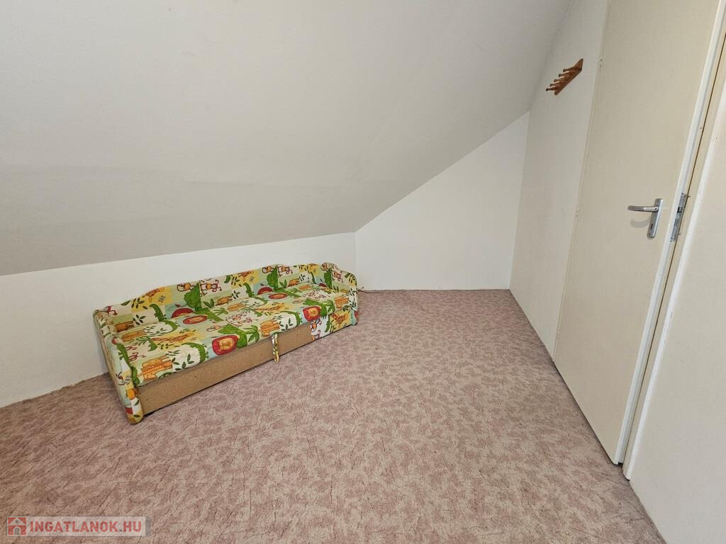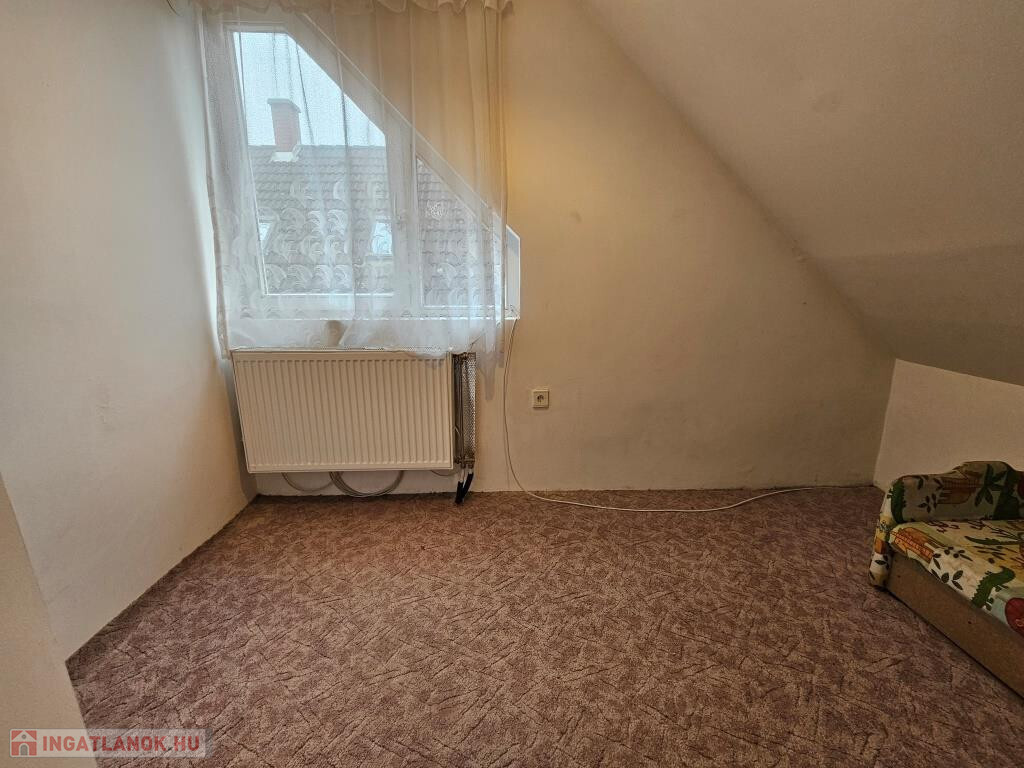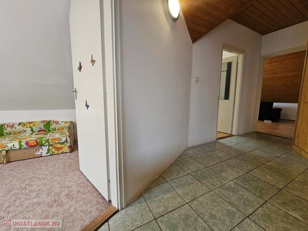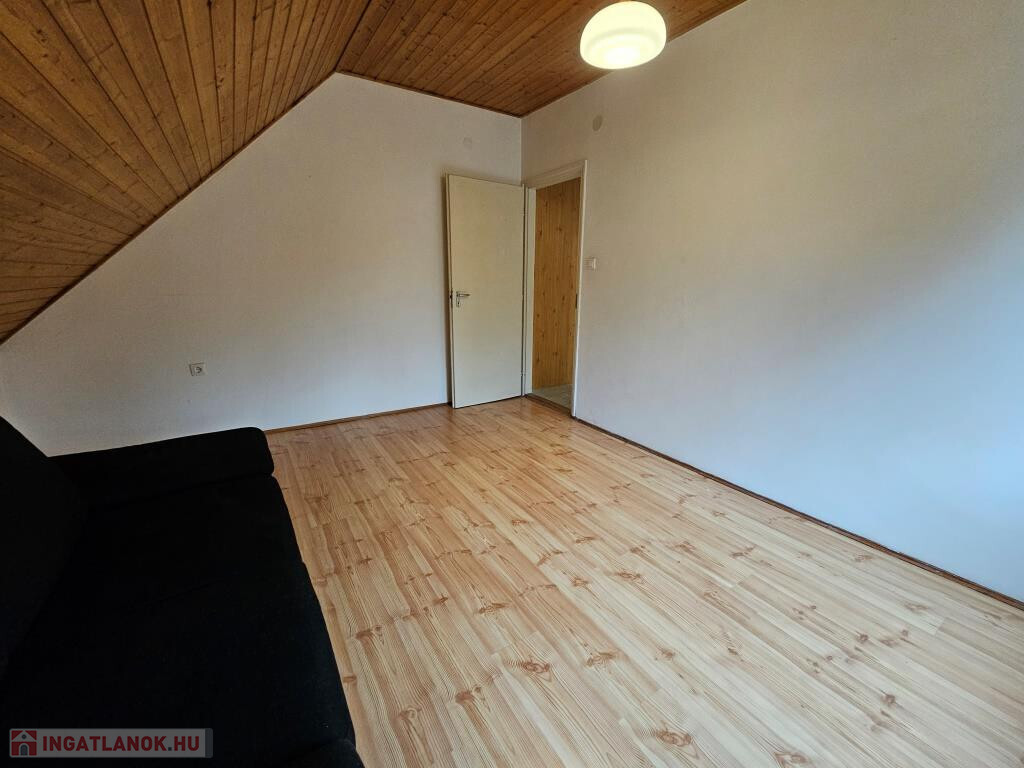 Kaposváron, a Bláthy Ottó utcában kínáljuk bérbevételre ezt a lakást. Egy kétlakásos családi ház egyik felében helyezkedik el, belső kétszintes. Földszinti részén az előtérhez csatlakozik egyrészt a konyha, másrészt a nappali, ahol az étkező is kialakítható, valamint találunk még itt egy kisebb fürdőt WC-vel, zuhanyzóval. A beépített tetőtérben a közlekedőből nyílik három külön bejáratú szoba és egy sarokkádas fürdő. A lakás alapterülete bruttó 90, nettó 77 m2. Tartozik hozzá egy garázs, valamint a kazánház, mint tároló. Fűtése saját gázkazánról működik, a szobákban radiátorokkal, a többi helyiségben padlófűtéssel. Külön mérőórák vannak, így a fogyasztás pontosan mérhető, a rezsi ezek alapján fizetendő. A lakás bútorok nélkül, üresen kerül kiadásra. Mivel van már egy kutya, ezért más állat nem hozható, és a dohányzás nem megengedett. Az udvar egy részét lehet használni. Bérlőt hosszabb távra, legalább egy évre keresünk, aki kéthavi bérleti díjnak megfelelő összegű kaució és az első havi bérleti díj kifizetése után beköltözhet.