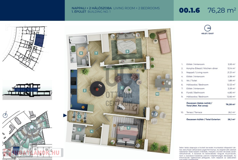 Az ingatlanpiac legújabb gyöngyszeme várja Önt és családját! Ez a kiváló állapotú, új építésű lakás ideális választás mindenki számára, aki a modern életstílust és a prémium kivitelezést keresi. Az ingatlan alapterülete 76m2, amely két tágas szobát kínál hatalmas nappalival, így bőven elegendő helyet biztosít a családi élethez. A 26m2-es terasz tökéletes helyszín a pihenésre és a szabadban eltöltött időre. A lakás minimalista kialakítása és világos, barátságos terei azonnal magukkal ragadják az érdeklődőket. Az ingatlan okos otthon rendszerrel van felszerelve, amely lehetővé teszi a modern technológiák egyszerű és kényelmes használatát. Az elektromos (fan-coil) fűtés-hűtés gondoskodik a maximális komfortérzetről, míg az automata öntözőrendszer a kert szépségét megőrzi. A lakópark, amelyben az ingatlan található, exkluzív környezetet biztosít, és a csendes, rendezett kertje a nyugalom szigetét nyújtja a város forgatagában. A medence lehetőséget ad a családok számára a közös időtöltésre, míg a portaszolgálat biztonságot és kényelmet nyújt. Az ingatlan közlekedési csomópont közelében helyezkedik el, így a város tömegközlekedési lehetőségei könnyen elérhetők. A környék ellátottsága kiváló, hiszen a közelben találhatóak bolt, iskola, óvoda és orvosi rendelő, így minden szükséges szolgáltatás könnyedén elérhető. A biztonságos és csendes környezet ideális helyszínt biztosít a családok számára, akik a nyugodt életet keresik. Egy ilyen egyedi tervezésű ingatlan nem mindennapi lehetőség, ezért érdemes mielőbb megtekinteni! Kérjük, ne habozzon felkeresni bennünket, amennyiben bármilyen kérdése van a lakással, lakóparkkal, vagy a környékkel kapcsolatban.