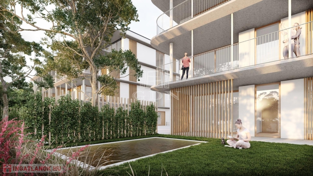 A lakásokhoz mindegyik szárnyon burkolt kialakítású lapos tetős teraszok készülnek. A földszinti lakásokhoz a teraszok mellett magánhasználatú kertrészek is csatlakoznak, a harmadik emeleten pedig épületszárnyanként 2-2 lakáshoz egy saját használatú zöldtetős tetőterasz is kapcsolódik. Zöldmezős beruházás, de a városépítészeti koncepció szerint a területre egy többemeletes, társasházas építészeti környezet lesz jellemző, amibe a tervezett épület is illeszkedik.