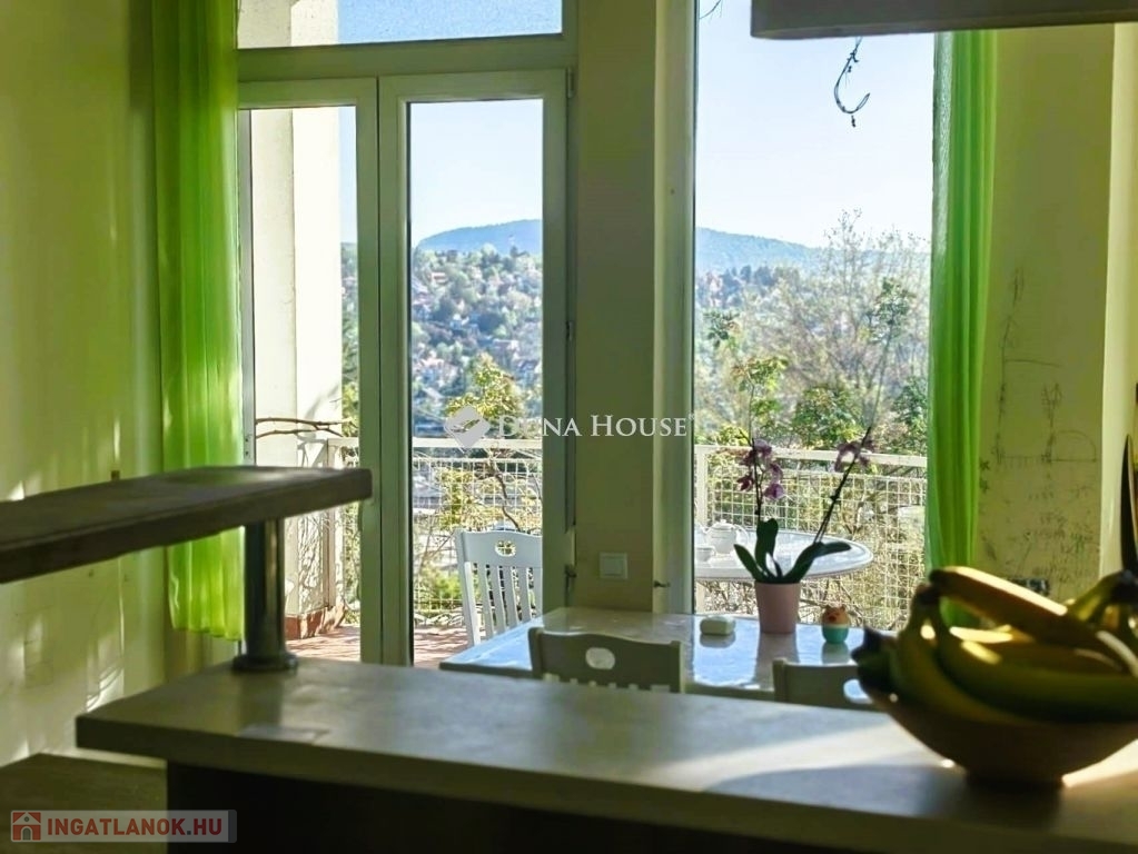 PANORÁMÁS, 4 SZOBÁS LAKÁSTERASZOKKAL,SAJÁT KERTRÉSSZEL ELADÓ!Adyliget panorámás, sík utcájában,1991-ben 820 nm-es kertben épült kétlakásos ház földszintjén116 nm-es, amerikai konyhás nappali + 3 szobás lakás 2 fürdővel, 3 terasszal eladó.Fűtése gázüzemű cirkókazánnal történik, padlófűtéssel, a hálószobákban radiátor hőleadókkal.A lakás bejárata a kertből nyílik.Napfényes, 4 égtáj felé tájolt, ablakai a saját kertre, hegyekre panorámásak.A nagyobb fürdőben kád és zuhanyozó, a kisebb fürdőben zuhanyozó és mosókonyha található.A lakásból belső lépcsőn közelíthető meg a 84 nm-es, angolaknás, több helyiségből álló alagsor,2 zuhanyzós fürdővel, kazánházzal.A parkolás az utcán ingyenes.A környék ellátottsága kitűnő, sétatávolságra orvosi rendelő, állatorvosi rendelő, élelmiszerbolt, játszótér,angol nyelvű óvoda található,a közelben SPAR, LIDL, CBA, DM, éttermek, bankok, posta, fitness termek, uszoda, sportpálya, kultúrkúria,magyar és német nemzetiségi iskola, gimnázium,az amerikai, francia és spanyol iskola 7-10 perc autóval.63-as, 157-es buszokkal 5 perc a Hűvösvölgy végállomás,ahonnan buszokkal, villamosokkal a Széll Kálmán tér 17 perc alatt elérhető.