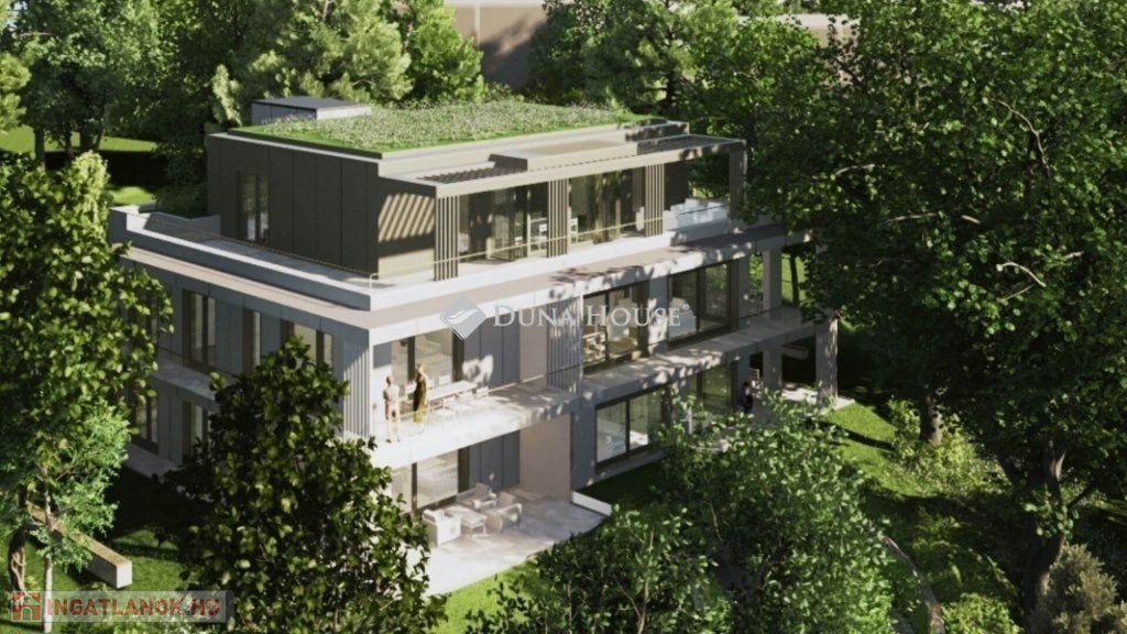 Kertkapcsolat a földszinten, zöld lombkoronás kilátás az emeleten, és lélegzetelállító panoráma a penthouse-ból - mindez elegáns, prémium kivitelben.