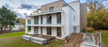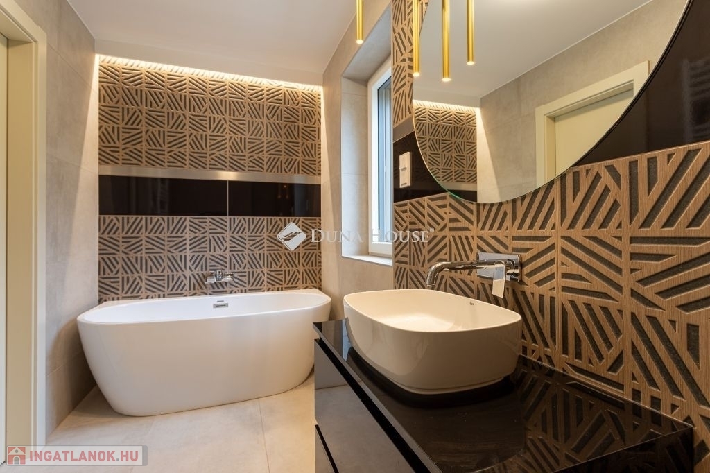 A dús növényzettel teli, 2234 m2-es telekre épült 3 szintes ingatlan a városi kényelem és a természetközeli élet ideális kombinációját kínálja. A tervezés során kiemelten ügyeltek a privát terekre. Nagy figyelmet kapott a praktikusság, a tágas élettér és a kényelmes, jól kihasználható teraszok kialakítása, melyek alapterületének arányos része a megadott összterületbe is beleszámít. A teraszok jacuzzival és pergolával felszereltek.