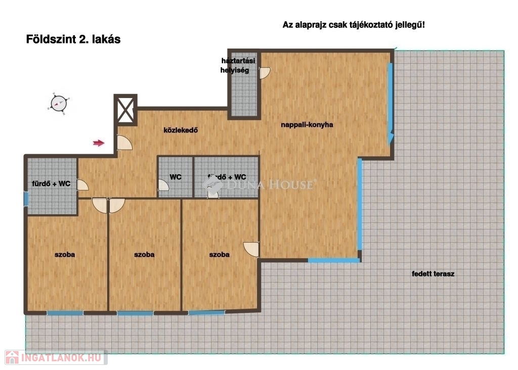Az épület földszintjén lévő lakáshoz tágas, 50 m2-es terasz tartozik.