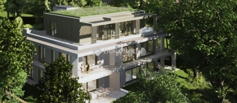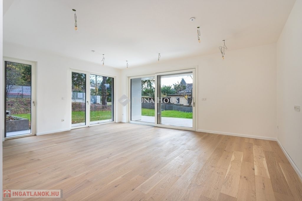 Kertkapcsolat a földszinten, zöld lombkoronás kilátás az emeleten, és lélegzetelállító panoráma a penthouse-ból - mindez elegáns, prémium kivitelben.