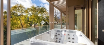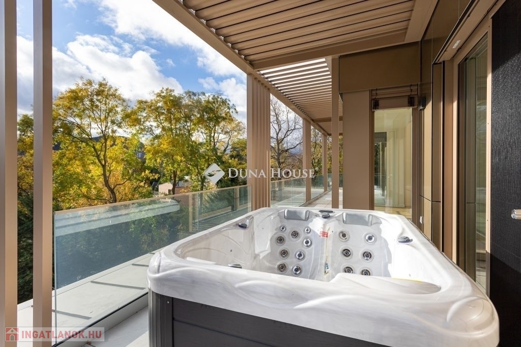 A dús növényzettel teli, 2234 m2-es telekre épült 3 szintes ingatlan a városi kényelem és a természetközeli élet ideális kombinációját kínálja. A tervezés során kiemelten ügyeltek a privát terekre. Nagy figyelmet kapott a praktikusság, a tágas élettér és a kényelmes, jól kihasználható teraszok kialakítása, melyek alapterületének arányos része a megadott összterületbe is beleszámít. A teraszok jacuzzival és pergolával felszereltek.