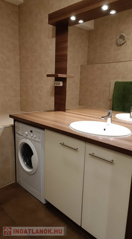 Amerikai konyha- nappali plusz két külön bejáratú szoba (háló), épített zuhanyfülkés fürdő, valamint különálló WC kézmosóval.
