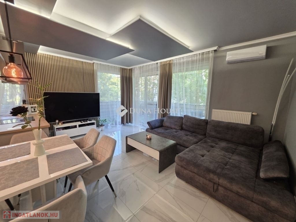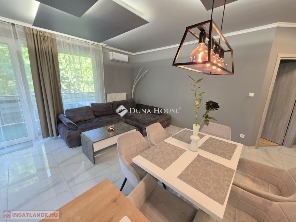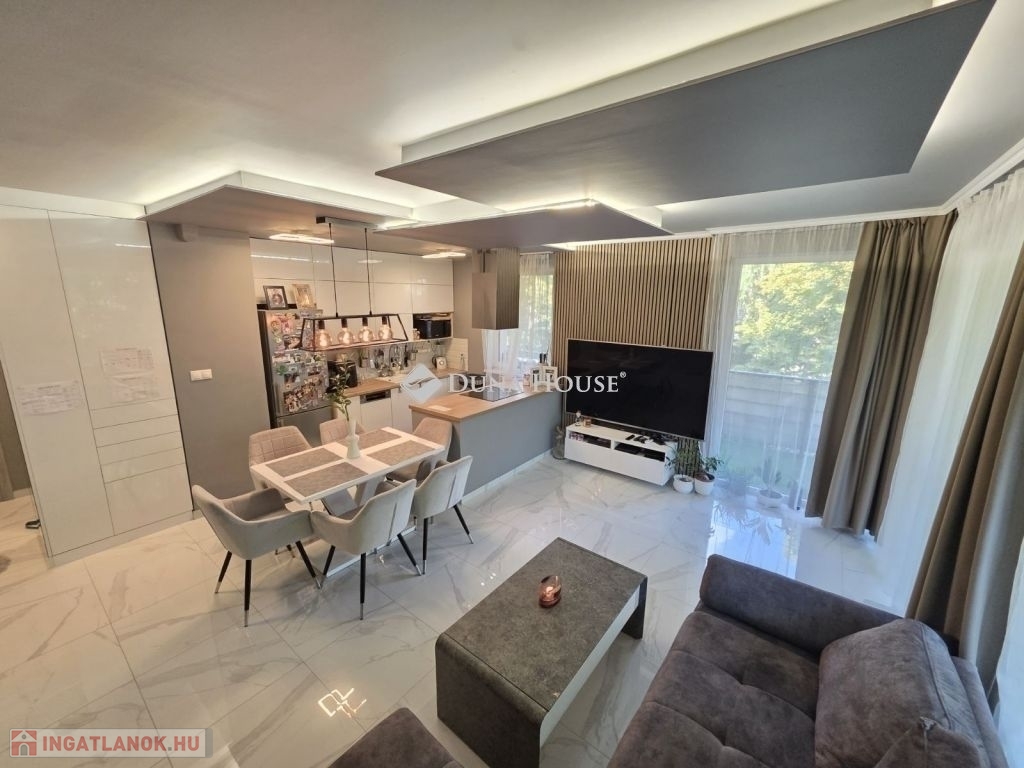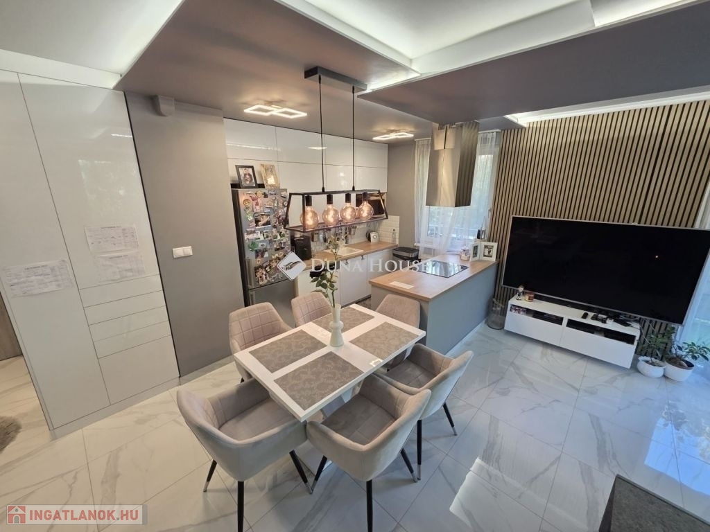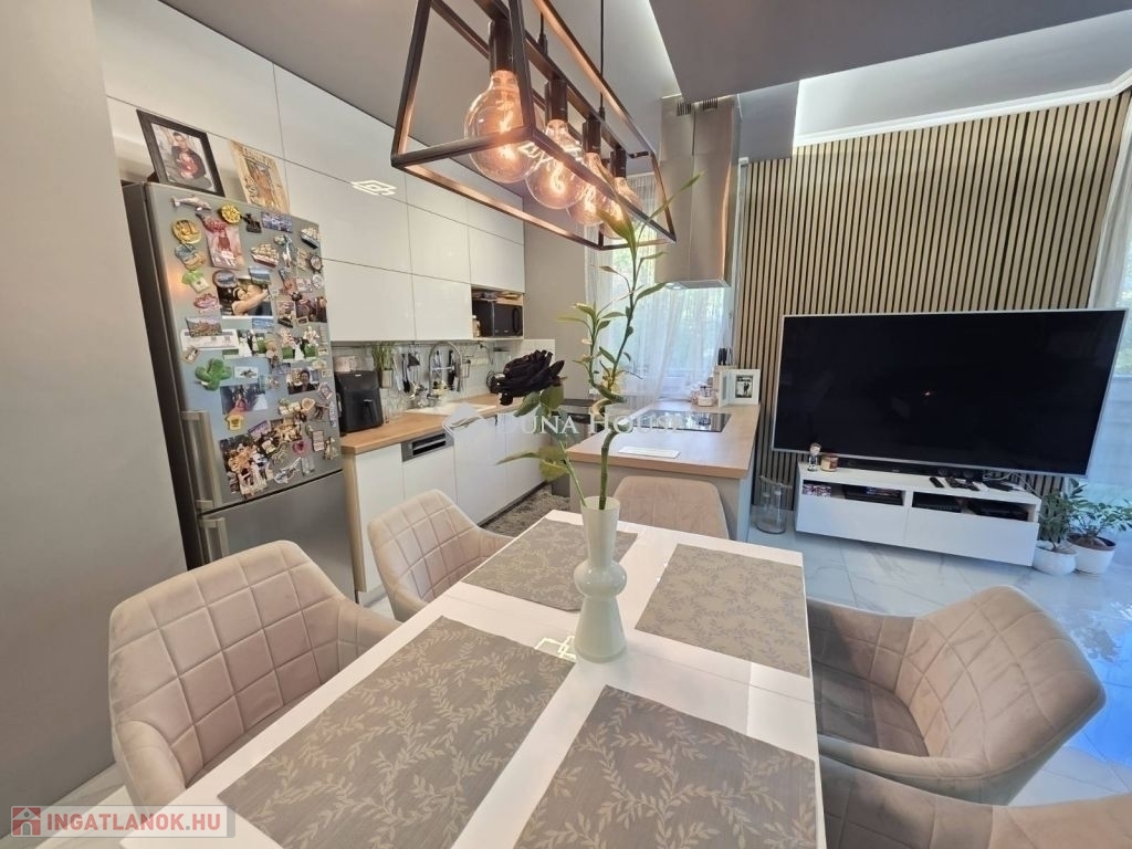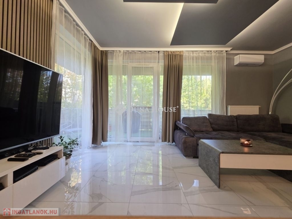 Eladó 3 szobás, exkluzív, felújított lakás a Római-parton  65 m² + 21 m² terasz + 5 m² tároló + garázsEladó egy teljes körűen felújított, exkluzív 3 szobás lakás a Római-part egyik legkedveltebb lakóparkjában, közvetlenül a Duna közelében.A 65 m²-es lakás igényes belső kialakítással, 21 m²-es tágas terasszal, 5 m²-es külön tárolóval, valamint saját teremgarázs-beállóval rendelkezik  minden az ár részét képezi.A lakás 2024-ben teljes körű felújításon esett át: a burkolatoktól a nyílászárókig minden megújult, a gépészet korszerűsítve lett, és új szagelzáró rendszer került kiépítésre, hibátlan műszaki állapotú.A nagy méretű ablakoknak köszönhetően a lakás egész nap világos, napfényes. A terasz a parkosított, zöld belső udvarra néz, így teljes nyugalmat biztosít.A lakópark 24 órás portaszolgálattal, gondozott kerttel és zárt, biztonságos környezettel várja lakóit.A Római-part az utóbbi években Budapest egyik legélhetőbb városrésze lett: a felújított Duna-parti sétány mentén játszóterek, szabadtéri edzőpontok, kínálnak aktív kikapcsolódást.Ez a lakás ideális választás mindazoknak, akik a városi kényelem és a természet közelsége között keresnek egyensúlyt.Minden igényt kielégítő otthon, amelyhez nincs szükség további ráfordításra.