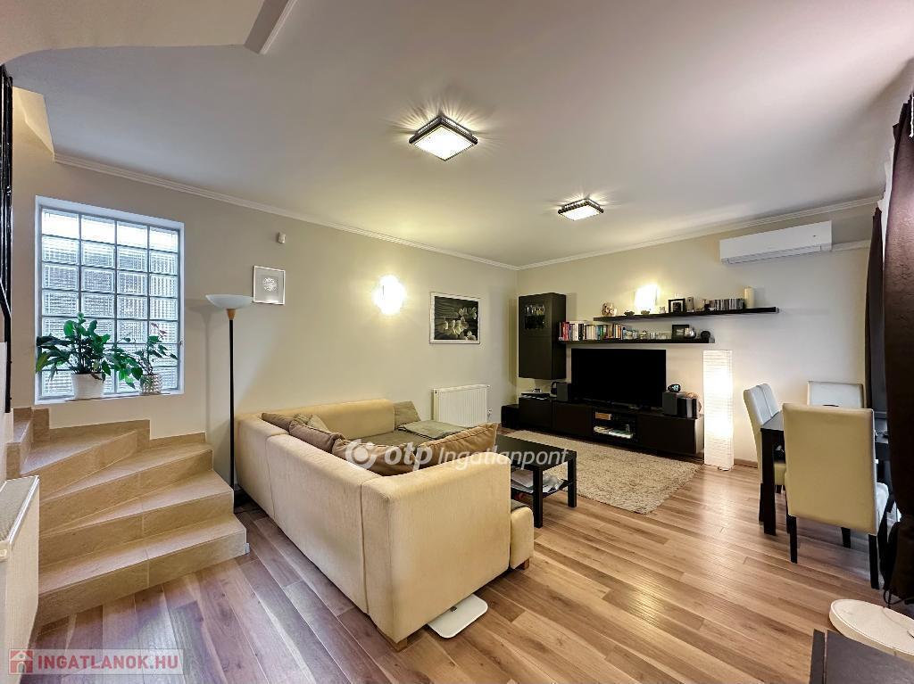 A lakás modern műszaki megoldásokkal felszerelt: mindkét szinten wifiről távolról vezérelhető hűtő-fűtő klíma működik, az alsó szintre három hónapja szerelték az új készüléket. Elektromos kapu, alumínium redőnyök és spaletták, valamint egy vadonatúj XIMAX Portoforte 60 alumínium fedett gépkocsibeálló tartozik a felszereltséghez. Az ingatlan egyedi fűtésű, rendkívül alacsony rezsijű, közös költség nincs. A kertben külön vízmérő biztosítja, hogy csatornadíjat ne kelljen fizetni, és az áram is ki van vezetve a kerti használathoz. A házba gigabites internet is be van kötve.
