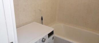 A fürdőszoba káddal rendelkezik, a WC egy külön helyiségben kapott helyet.
