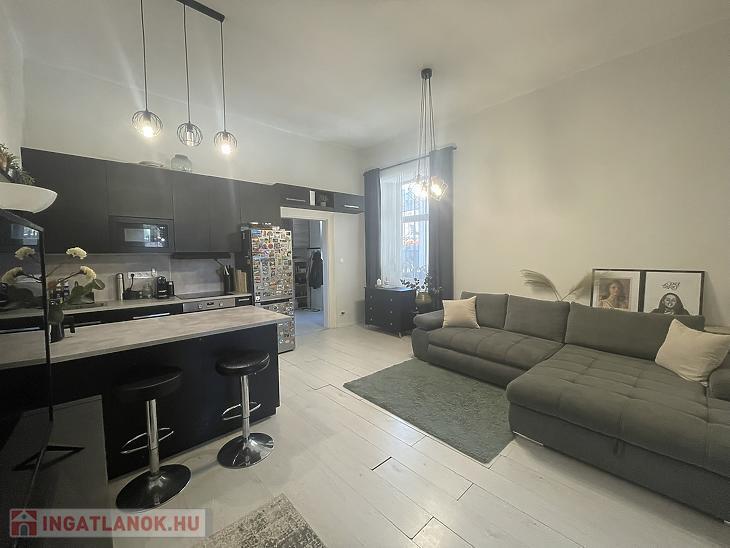 A lakást 2021-ben felújították, ennek keretein belül megtörtént a teljes víz, gáz és villanyhálózat cseréje. Több ponton záródó biztonsági bejárati ajtót, illetve sötétítővel ellátott fa keretes, thermo üveges nyílászárókat építettek be. A szobákban laminált padló található, a többi helyiségben pedig járólap. A fűtésről és a melegvíz ellátásról kombi cirkókazán gondoskodik. A fűtőtestek korszerűsítése is megtörtént, új lapradiátorokat és törölközőszárítót szereltek be.