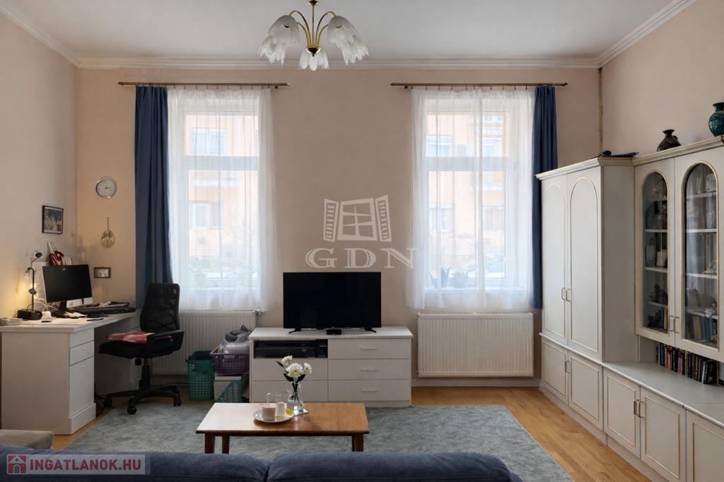 Eladó Újpest központhoz közel, az Attila utcában egy 82 m²-es, közepes állapotú lakás egy 6 lakásos társasházban. Az ingatlan egy 40 m²-es és egy 42 m²-es lakás egybenyitásából nyerte el jelenlegi kialakítását.