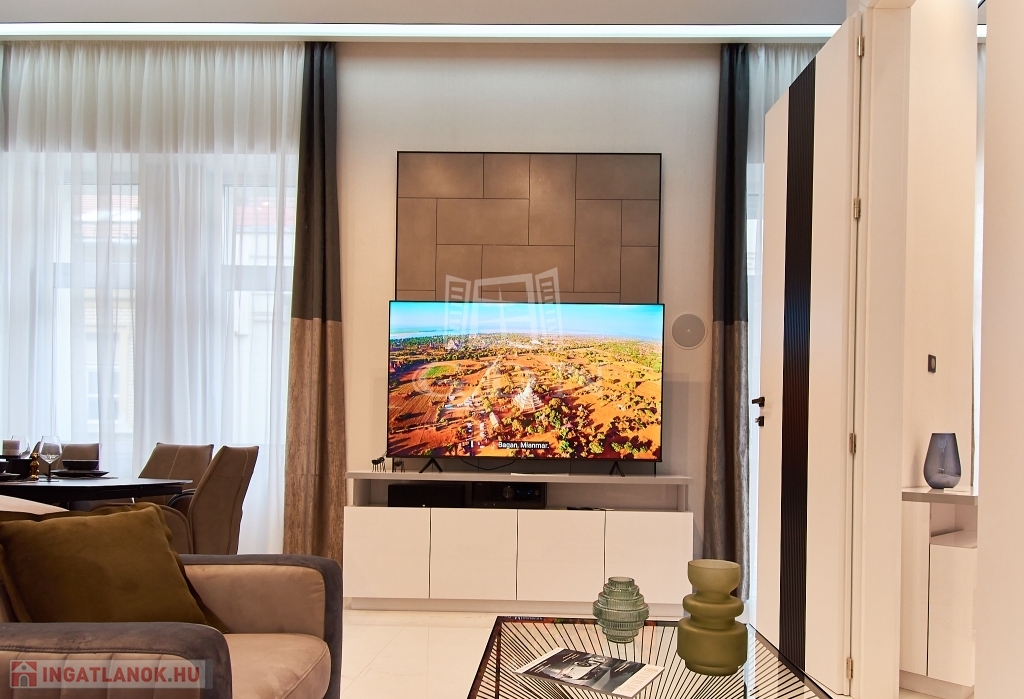 V. kerületben, az Aranykéz utcában, eladásra kínálunk egy 110 m2-es (valóságban 121 m2), 3 szobás (2 háló + amerikai konyhás nappali), ERKÉLYES, dupla komfortos, egyedien és PRÉMIUM minőségben felújított EXKLUZÍV, LUXUS lakást.