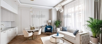 fő hálószobához egy elegáns káddal, WC-vel és bidével felszerelt fürdőszoba kapcsolódik, míg a második szobához egy modern zuhanyzós fürdő. Az ingatlan prémium minőségű bútorokkal és gépekkel együtt eladó, így az új tulajdonos azonnal beköltözhet egy teljesen felszerelt, exkluzív otthonba. A teljes körű felújítás során megtörtént a víz- és villanyvezetékek, valamint a fűtéscsövek, radiátorok cseréje. Designer csillárok, beépített szekrények, minőségi szaniterek és prémium burkolatok kerültek beszerelésre. A 3,30 méteres belmagasság és a chevron mintás tölgyfa parketta különleges, elegáns hangulatot kölcsönöz az otthonnak. A konyha teljesen gépesített, AEG márkájú készülékekkel felszerelt, mosogatógép, hűtő fagyasztóval, sütő, mikró, főzőlap, páraelszívó és mosógép is rendelkezésre áll. A lakás kényelmét két légkondicionáló és automata redőnyök, plusz sötétítők biztosítják. A fűtést házközponti rendszer biztosítja, a közös költség vízzel együtt 53.709.- Ft havonta. A társasház a klasszikus budapesti építészeti stílust képviseli. Az épület az 1900-as évek elején épült, és azóta számos felújításon esett át, megőrizve eredeti báját és eleganciáját. Az ingatlan, a lifttel felszerelt társasház 2. emeletén található a lépcsőházból nyílik a bejárati ajtó. A közvetlen közelben több busz- és villamosvonal elérhető, amelyek gyors és kényelmes kapcsolatot biztosítanak a város többi részével. Ez a lakás nem csak otthonként, hanem befektetésként is tökéletes választás azok számára, akik a belvárosi luxust és kényelmet keresik. Az ingatlan minden részlete a legmagasabb színvonalat