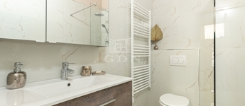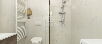 Az egyik fürdőszoba zuhanyzóval és WC-vel, a másik zuhanyzóval és mosógéppel felszerelt. A mennyezetbe épített szellőzőrendszer biztosítja a megfelelő légcserét.