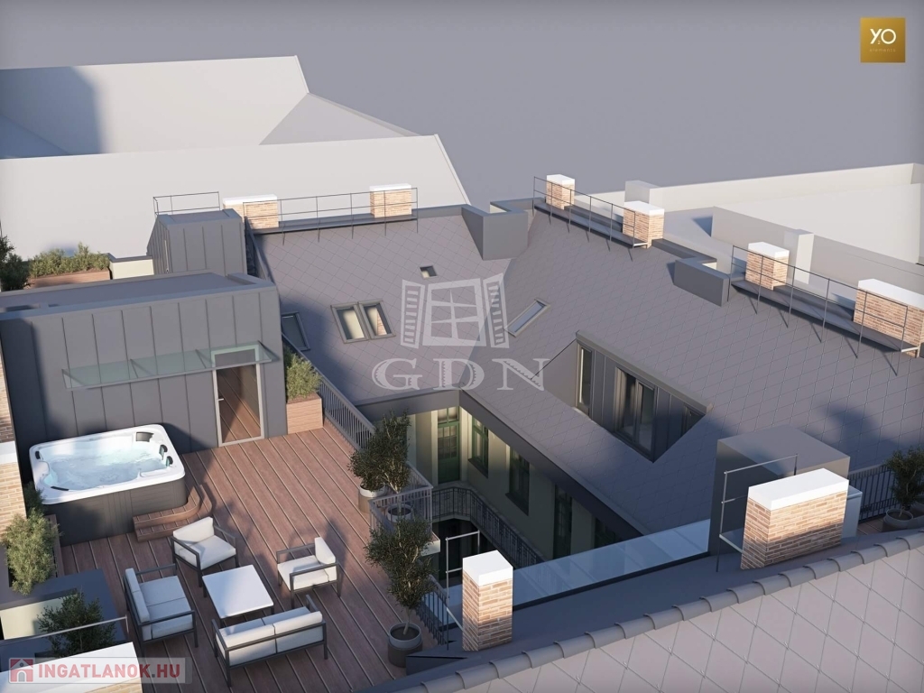 Egy klasszikus épület, melynek teljes körű felújítása során, a legfelső szinten, a padlástéren 4 modern, tetőteraszos okos otthon kerül kialakításra.