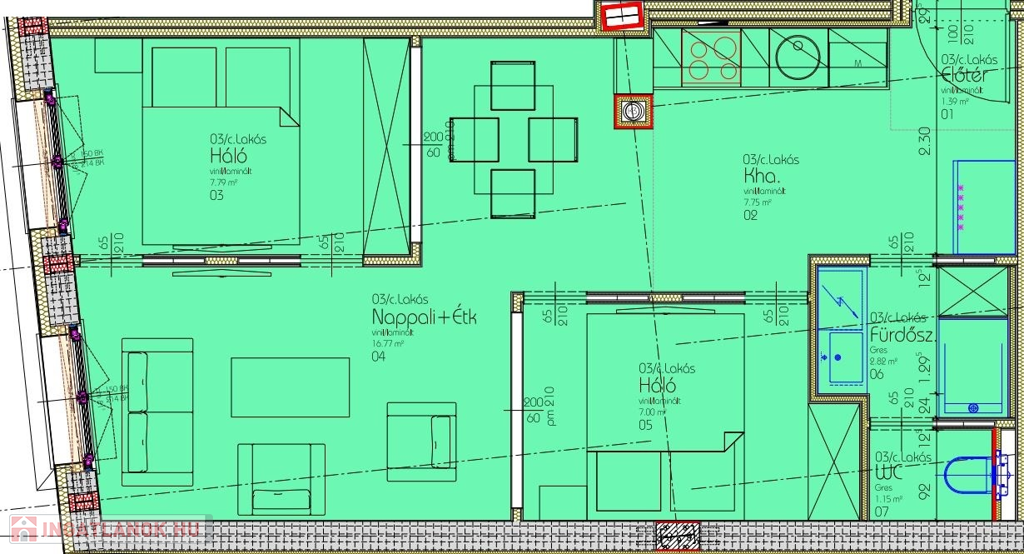 (ingatlan mérete: 77nm, terasz: 40 nm)