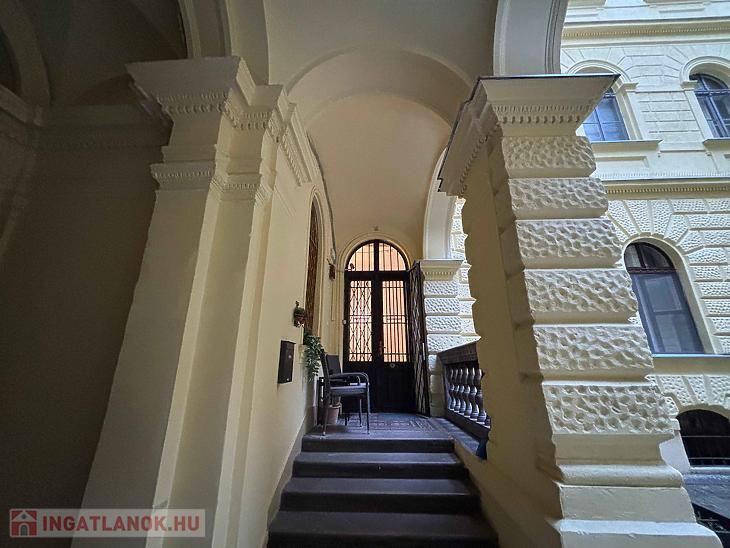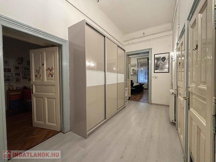 Eladó 124 m²-es (tulajdoni lap szerint), 130 m² hasznos területű, felújított, 3 (eredetileg 4) szobás lakás a VI. kerületben, a Vörösmarty utcában – utcai és udvari kilátással.