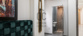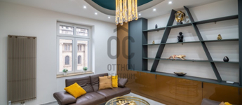 A lakás nagyvonalú terekkel rendelkezik, egyedi hangulatát neves designerek által tervezett bútorok és kiegészítők határozzák meg. A nappali központi eleme a látványkandalló, ahonnan a kanapén pihenve közvetlen kilátás nyílik a Bazilikára.