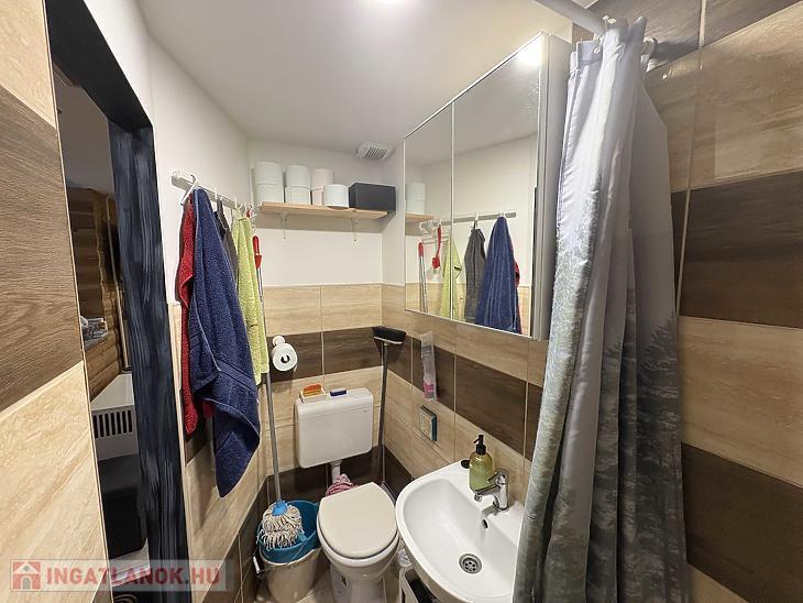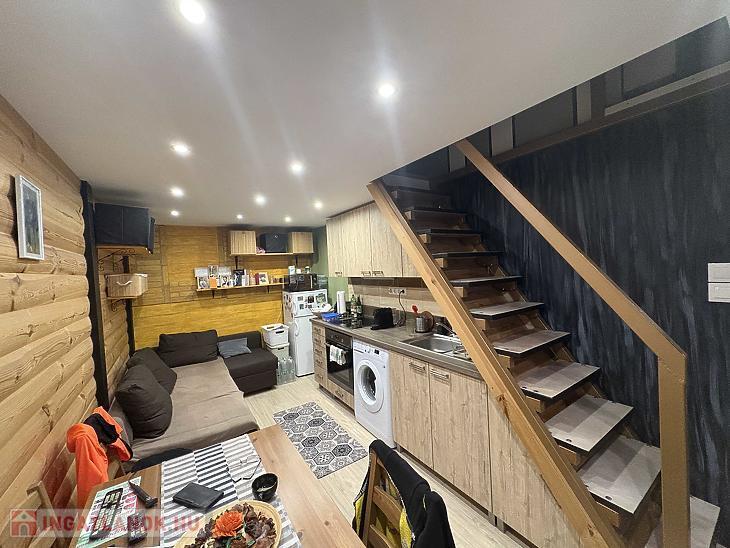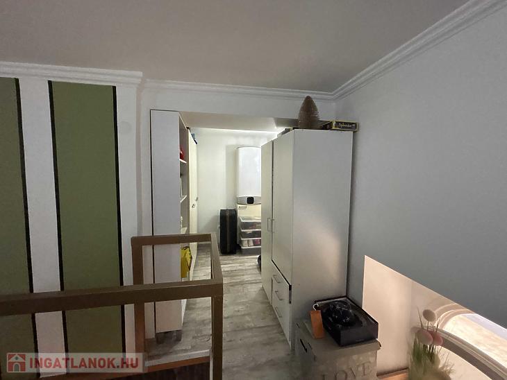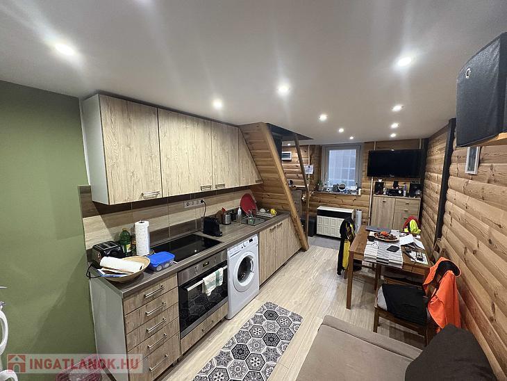 Az ingatlan 19 m² alapterületű, amelyet egy 17 m²-es, teljes belmagasságú állógaléria egészít ki – így a hasznos tér kényelmesen megnövekszik. A lakás okosan kialakított: a galérián tágas hálórész, a földszinten pedig nappali, konyha és zuhanyzós fürdőszoba található. A konyha teljesen gépesített, modern háztartási gépekkel felszerelt.