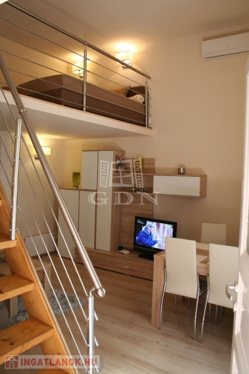 A nappali galériázott, így még praktikusabban kihasználható a tér. A lakás csendes, udvari nézetű, klímával felszerelt, a fűtés elektromos megoldással működik.