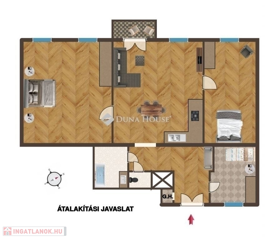 - Többfunkciós hasznosításban gondolkodóknak, akár lakótér plusz rendelő, ügyvédi iroda kialakítása is kivitelezhető