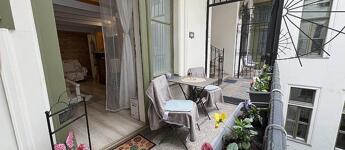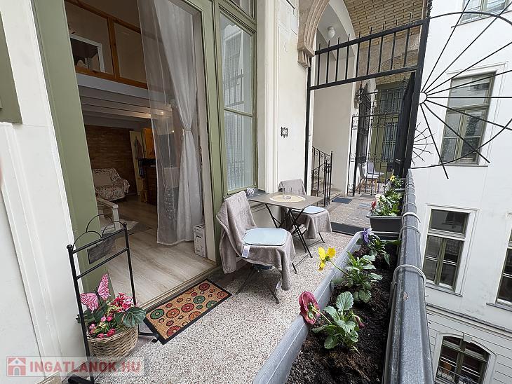 Az Andrássy úton az Opera mellett eladó egy 20 m²-es, emeleti, 1 szobás + galériás, felújított lakás.