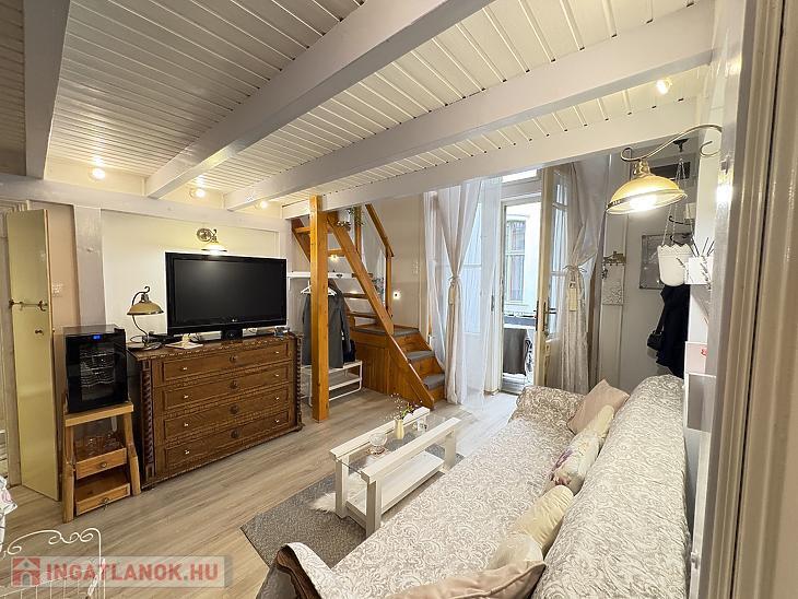 Kis mérete ellenére kiválóan kihasználható, praktikus elrendezésű ingatlan. A lakásban egy közel 10 m²-es galéria is helyet kapott, amely kényelmes hálórészként funkcionál, így az alsó szinten nappali-konyhás élettér alakítható ki. Ennek köszönhetően a lakás élhető, jól berendezhető, igazi belvárosi ékszerdoboz.