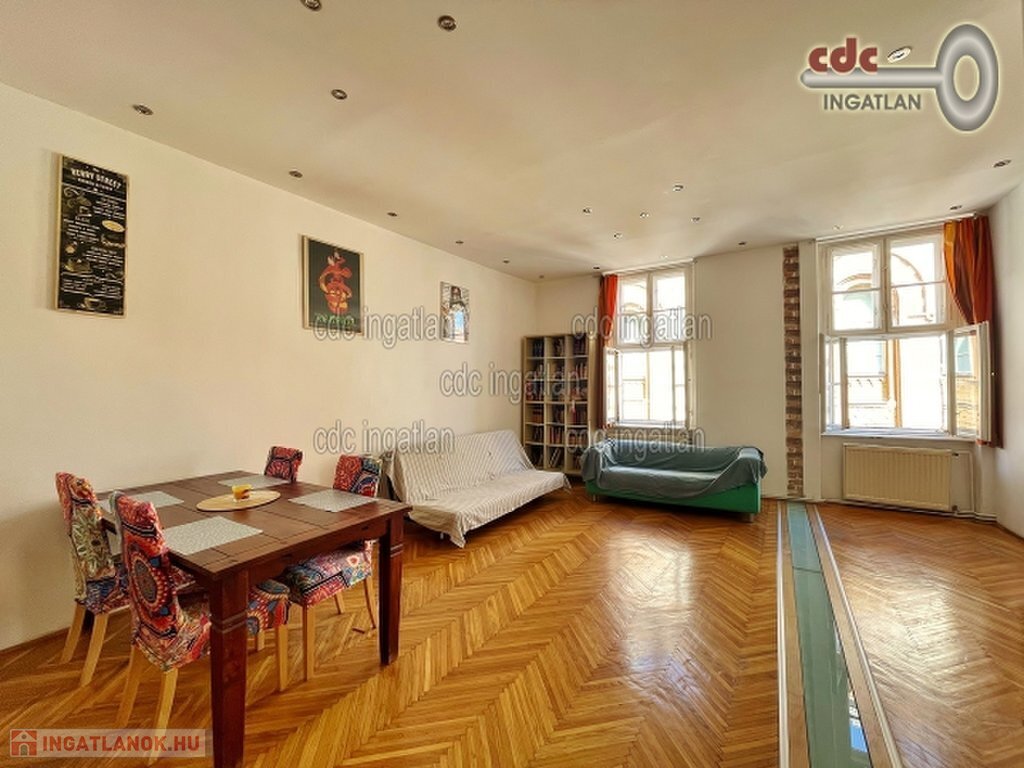VII. kerületben, a Deák tértől 2 perc sétára, csendes mellékutcában, éttermek és kávézók sokasága mellett eladó egy III. emeleti, a Zsinagógára néző, 102 m2-es, nappali + 3 hálószobás, 2 fürdőszobás, napfényes, csinosítást igénylő lakás. Az ingatlan jelenleg egy 80 m2-es amerikai konyhás nappali + 2 hálószobás, fürdőszobás lakásból és egy 20 m2-es kompakt stúdiólakásból áll melyeket egy közös előtér köt össze. Kiváló lehetőség bérbeadás céljára is a kiváló lokáció és ellátottság miatt. A lakás azonnal költözhető Irányár: 149.900.000 Ft.