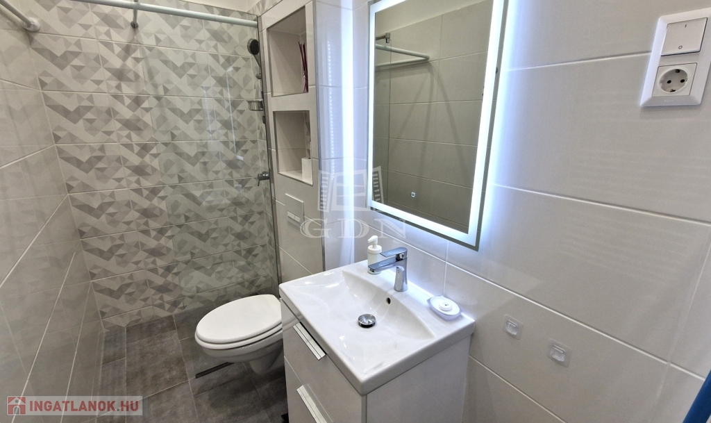 Az Erzsébet körúti appartman amerikai konyhás nappali+háló és modern zuhanyzós fürdőszoba elrendezésű, bútorozott-gépesített, azonnal költözhető.