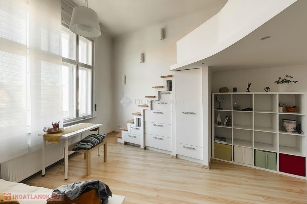 , napfényes, galériás lakás a Költözzön egy tágas, világos otthonba a belváros szívében! Ez a lakás egy szecessziós, 1912-ben épült liftes házban található.A lakás 77 nm-es + galériák, 2 tágas galériás szobával, + amerikai konyhás nappalival rendelkezik.Elhelyezkedés: Corvin-negyed, a Corvin Pláza közvetlen közelébenHamarosan költözhető: Teljes bútorzattal és gépesítéssel eladóÚj kazán, villanyhálózat, vízvezetékek cserélve. Az öreg menthetetlen parkettát felszedték, alatta a törmeléket eltávolították, újrabetinozták és burkolták.Sok tárolóhely áll rendelkezésre. Rendkívül világosak a szobák.Lokáció és infrastruktúra:A lakás kiváló környéken található, közel a Fazekas Mihály Gimnáziumhoz és a Pázmány Péter Egyetemhez. A mindennapi élethez szükséges szolgáltatások Corvin Pláza, pékségek, drogériák, éttermek pár perc sétára vannak. Kiváló közlekedés: 4-6-os villamos, M4 metró, buszok és trolik könnyen elérhetők.Az ingatlan hitelezhető.Ne hagyja ki ezt a különleges lehetőséget!