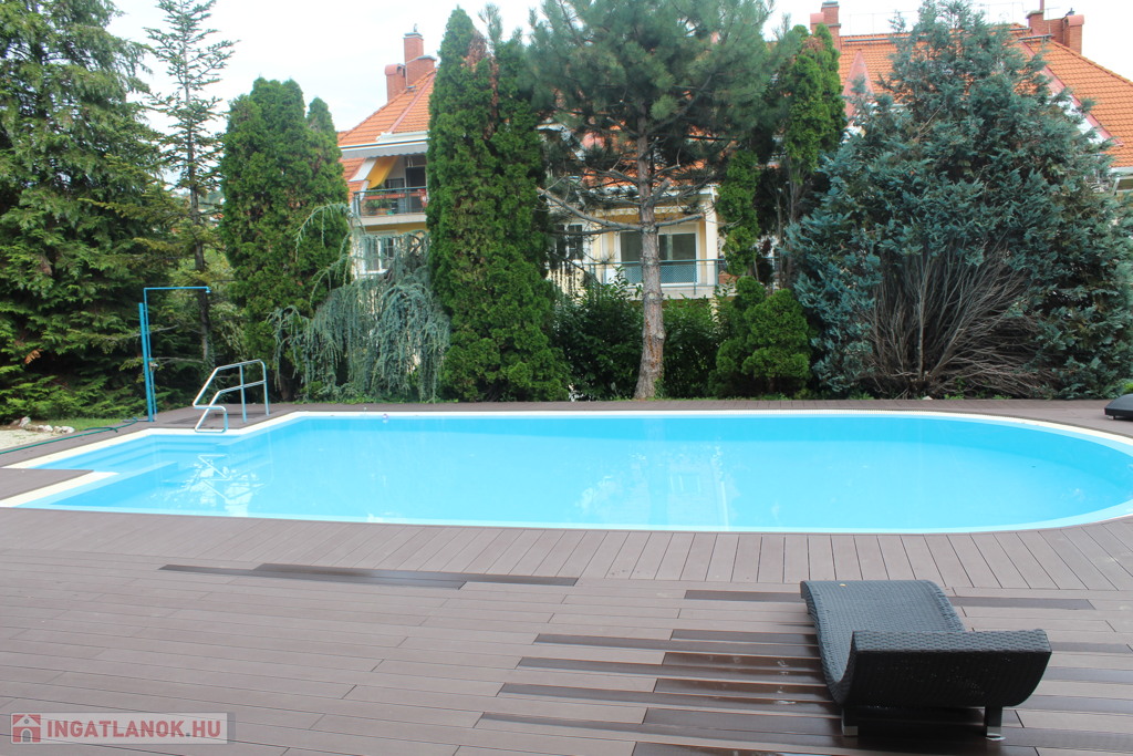 A 20 négyzetméteres terasz tágas, kellemes helyet biztosít a pihenésre és kikapcsolódásra, ahonnan csodálatos kilátás nyílik a gondozott, parkosított kertre. A társasház kertje mellett egy medencével is rendelkezik, amely kiváló kikapcsolódási lehetőséget nyújt a lakók részére.