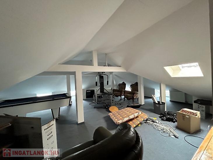 A lakáshoz tartozik még egy 100 m2-es tetőtéri „hobby” helyiség.