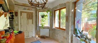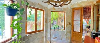 Az ingatlant a közvetlen utcafronti, saját használatú kertből közelíthetjük meg. A bejárati ajtón belépve egy 10 nm-es nagy üvegfelülettel rendelkező, napos veranda fogad minket. Innen nyílik a több helységet is összekötő előszoba.