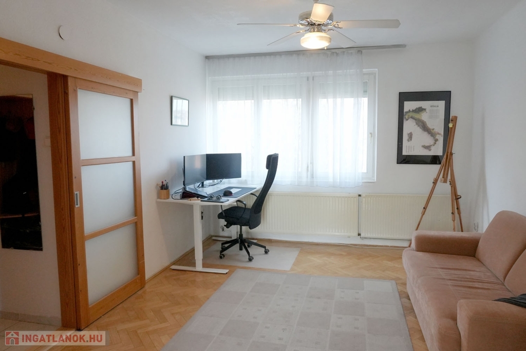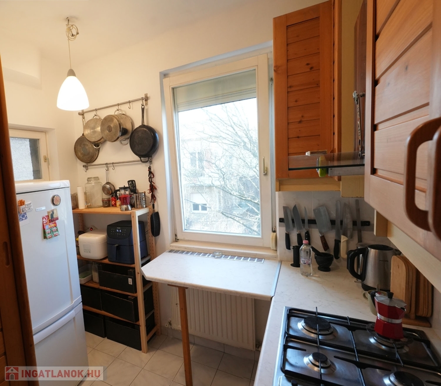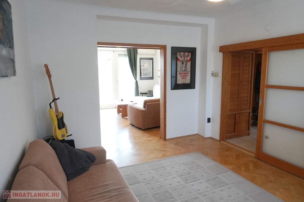 A lakásba érkezve egy jól használható előtér fogad, praktikus tárolási lehetőségekkel, ahonnan minden helyiség külön megközelíthető. A világos konyha, a kisebb háló, valamint a nagyobb tér a belső, zöld kert irányába néznek, így csendes és nyugodt életteret biztosítanak. Az ablakos fürdőszoba – amely ma már ritkább adottság – a ház másik oldalán kapott helyet.