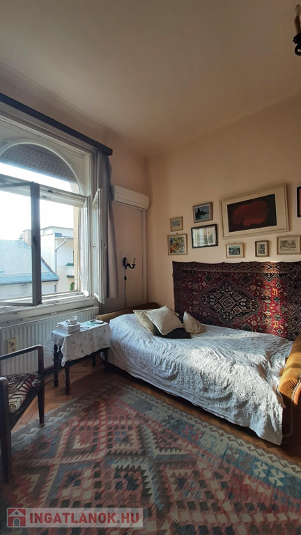 Budapest 13. kerületének Újlipótvárosi részén, Hollán Ernő utcában (Raoul . u.-nál)eladó 100 nm, IV. emeleti napfényes, cirkó fűtéses ingatlan, melyből egy 18 nm rész le lett választva egy teljesen külön bejárati ajtóval, és önálló külön lakásként használható. Ez a front udvarra néz. A lakás másik fele utcai, ahol egy hatalmas étkezős konyha és két szép nagy szoba található. A nagyobbik lakásban a fürdőszobában kád és zuhanykabin is van, a kisebbikben pedig szintén zuhanykabin, és itt a w.c. kézmosóval külön helyiségben található. Ideális nagyobb családnak, vagy a kisebbik rész bérbeadásra is alkalmas. Egy helyrajzi számon van, tehermentes. Irányára: 148 M Ft. Tulajdonosa egy kisebb ingatlanba költözne, ami kb. 60-70 nm, és jó állapotú.