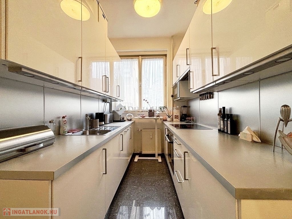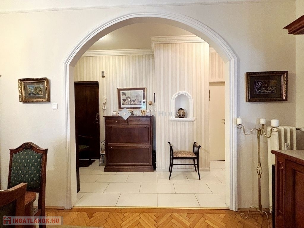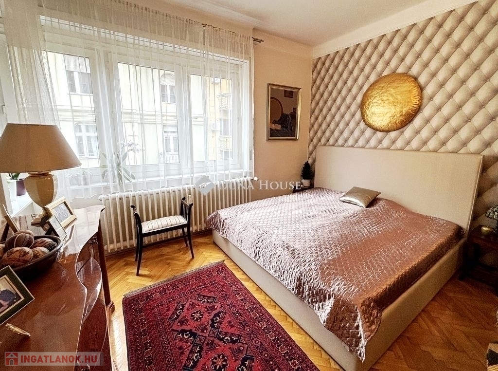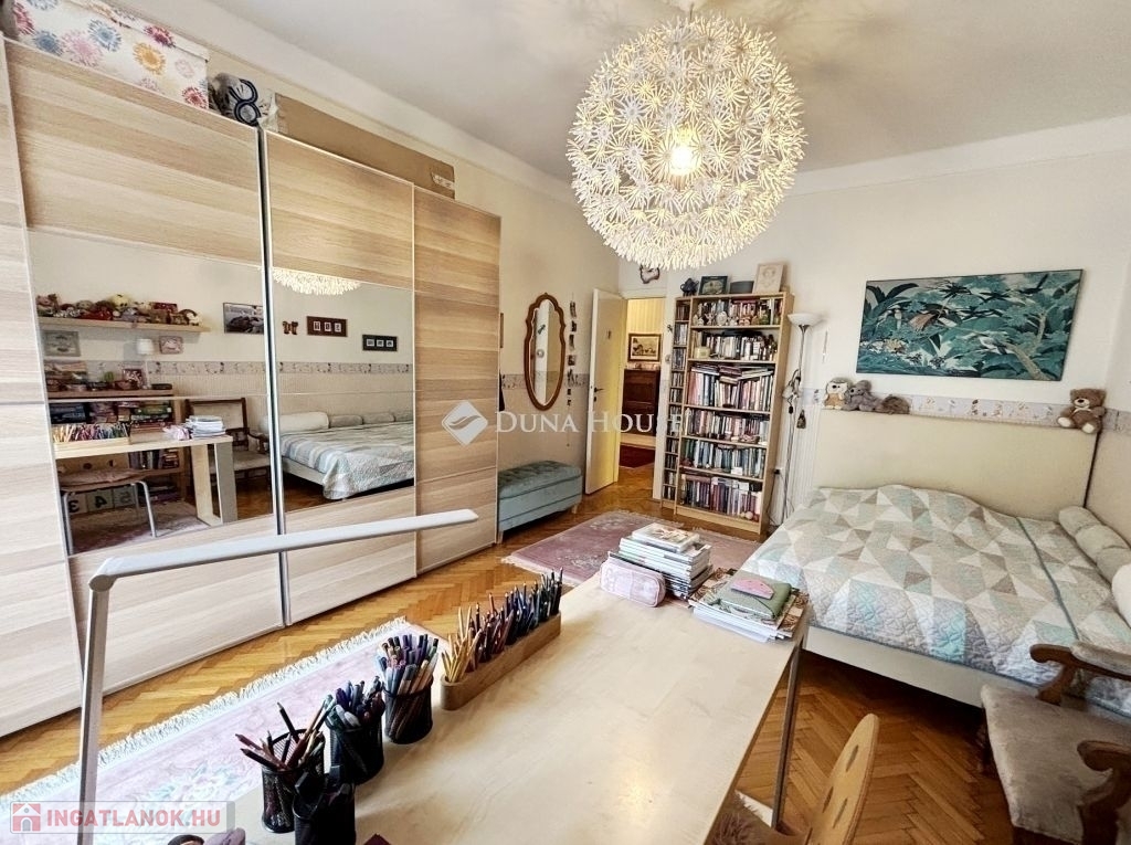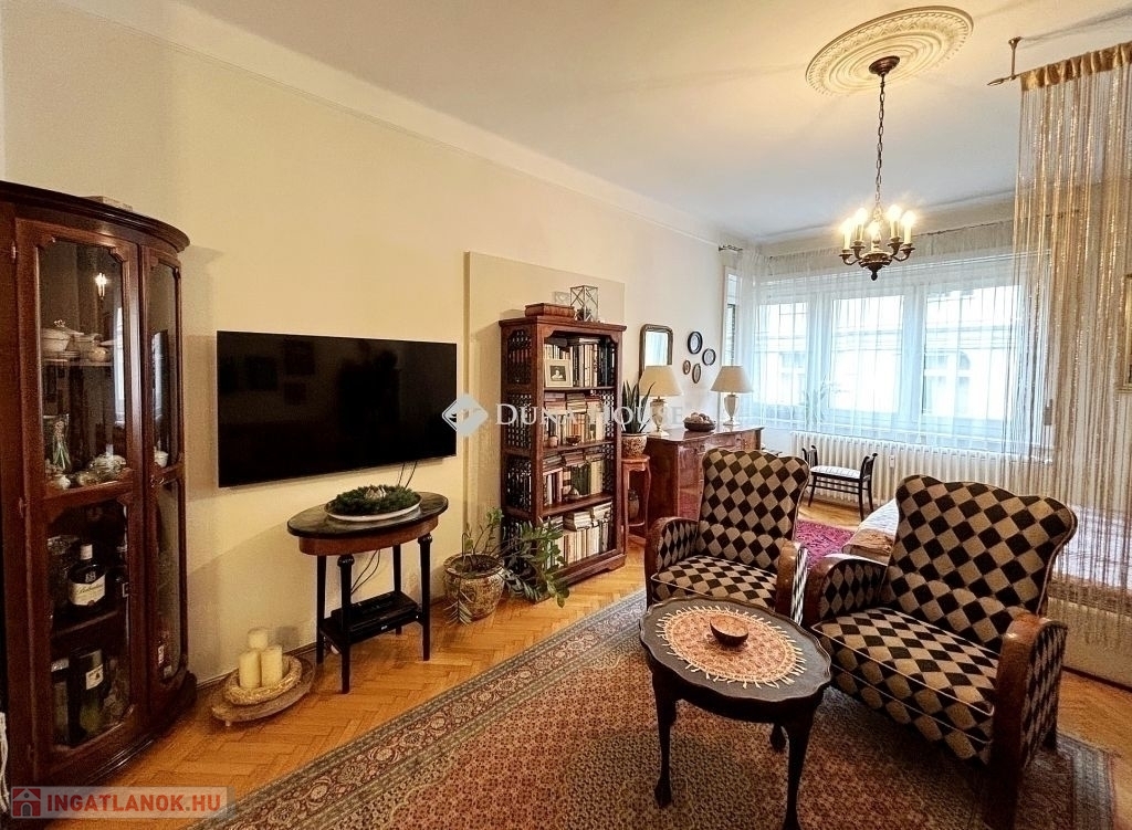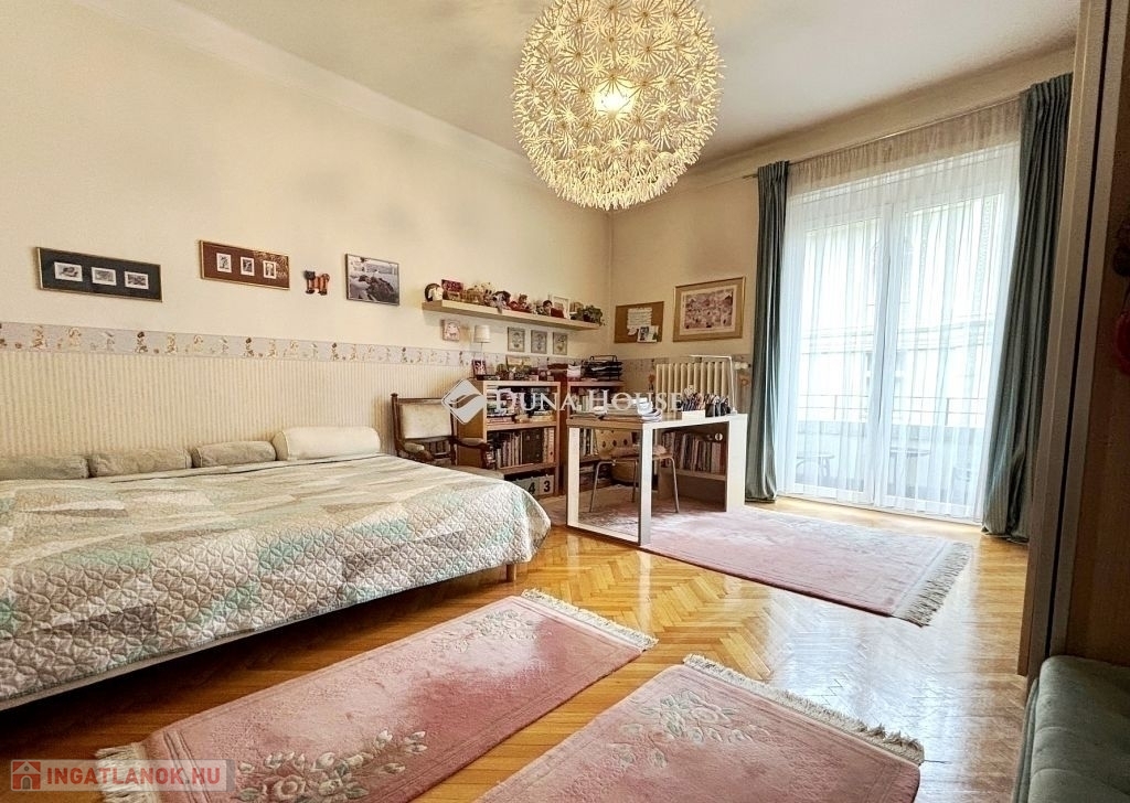 jól karbantartott nagypolgári lakás Újlipótváros egyik legkeresettebb részén.A XIII. kerület közkedvelt utcájában, a Hollán Ernő utcában rendezett, jó állapotú társasházában kínálunk megvételre egy 87 m² alapterületű lakást, amelyhez2 m²-es erkély is tartozik.Az ingatlan klasszikus nagypolgári jelleggel rendelkezik: közel 3 méteres belmagasság, tágas, jól tagolt terek és keleti tájolás jellemzi, aminek köszönhetően napfényes. Jelenlegi elrendezése szerint két szobával és egy félszobával rendelkezik, utóbbi gardróbként funkcionál, de igény szerint más célra is könnyen alakítható.A lakás jó állapotú, a legutóbbi felújítás 2011-ben történt, amelynek során megújultak a burkolatok, megtörtént a teljes falfestés, a parketta csiszolása és lakkozása, valamint az ajtók és ablakok festése és az elektromos hálózat átvizsgálása is. Az ingatlan azóta is folyamatosan karbantartott.A társasház kívül-belül rendezett, az ingatlanhoz közös használatú tároló is tartozik.A bútorok nem képezik a vételár részét, azok a vevői ajánlattól függően külön megállapodás tárgyát képezhetik.Az ingatlan tehermentes, jogilag rendezett.Az elhelyezkedés Újlipótváros egyik legnagyobb előnye: a környéken sétatávolságon belül kávézók, éttermek, pékségek, galériák és színházak érhetők el, miközben a mindennapi bevásárlás is könnyen megoldható. A Westend Bevásárlóközpont közelsége gyors és kényelmes vásárlási lehetőséget biztosít, mégis megmarad a városrészre jellemző nyugodt, polgári hangulat. A környék kiváló tömegközlekedési kapcsolatokkal rendelkezik, több villamos- és buszjárat, valamint metró is rövid időn belül elérhető.Az ingatlan saját célra ideális választás, ugyanakkor elhelyezkedése és adottságai miatt befektetésnek is kifejezetten ajánlott, hosszú távon is stabil értéket képvisel.