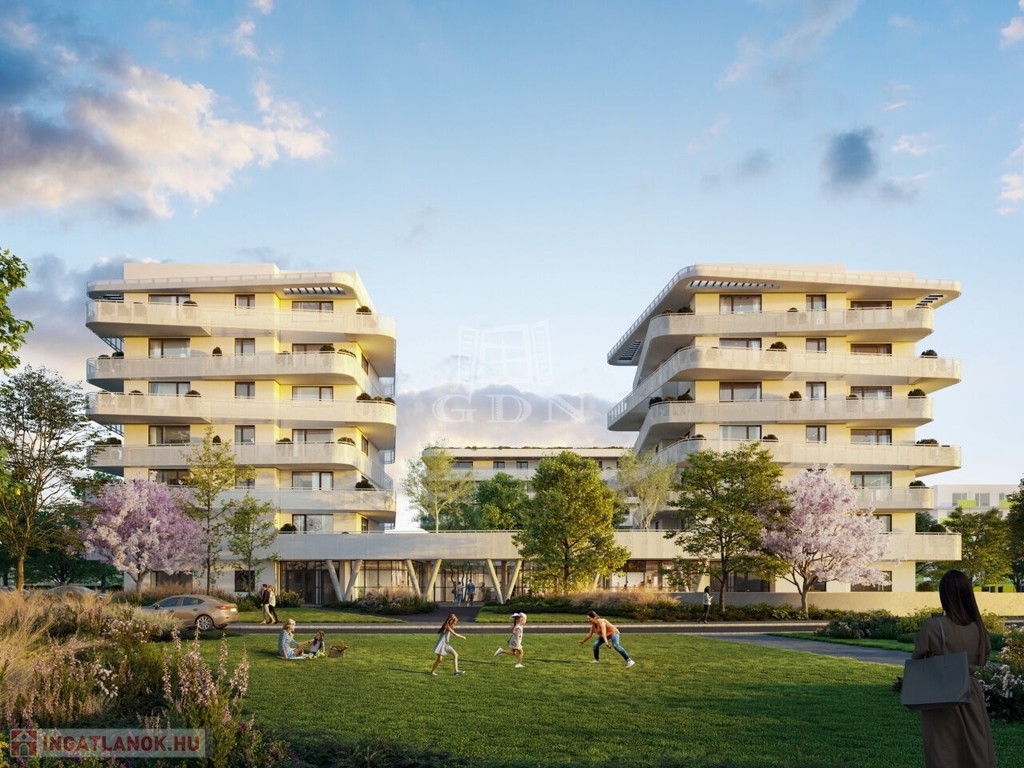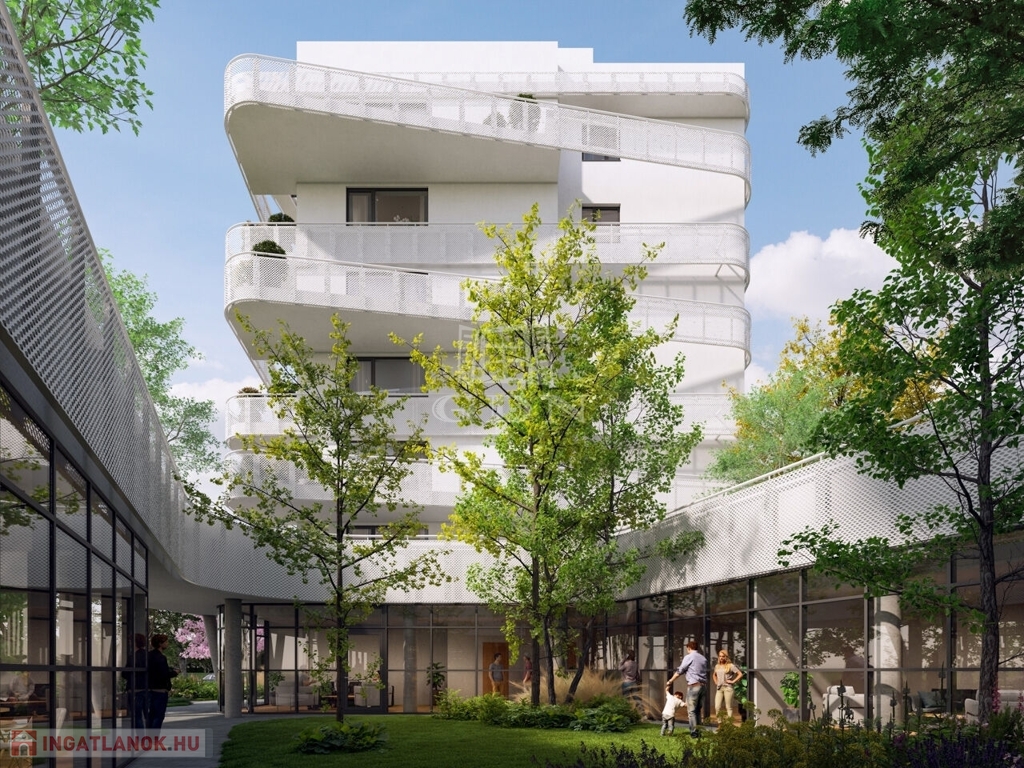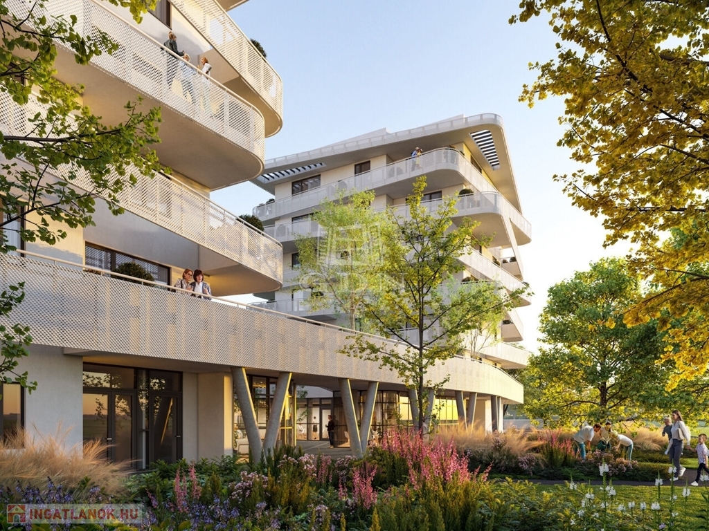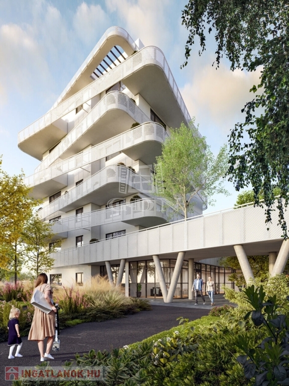 A két épületből álló beruházás során összesen 140 lakás épül, melyek izgalmas vonalvezetésű erkélyei segítik a többlakásos épület harmonikus illeszkedését a ligetes park és a megújult Rákos-patak által létrejövő környezetbe.