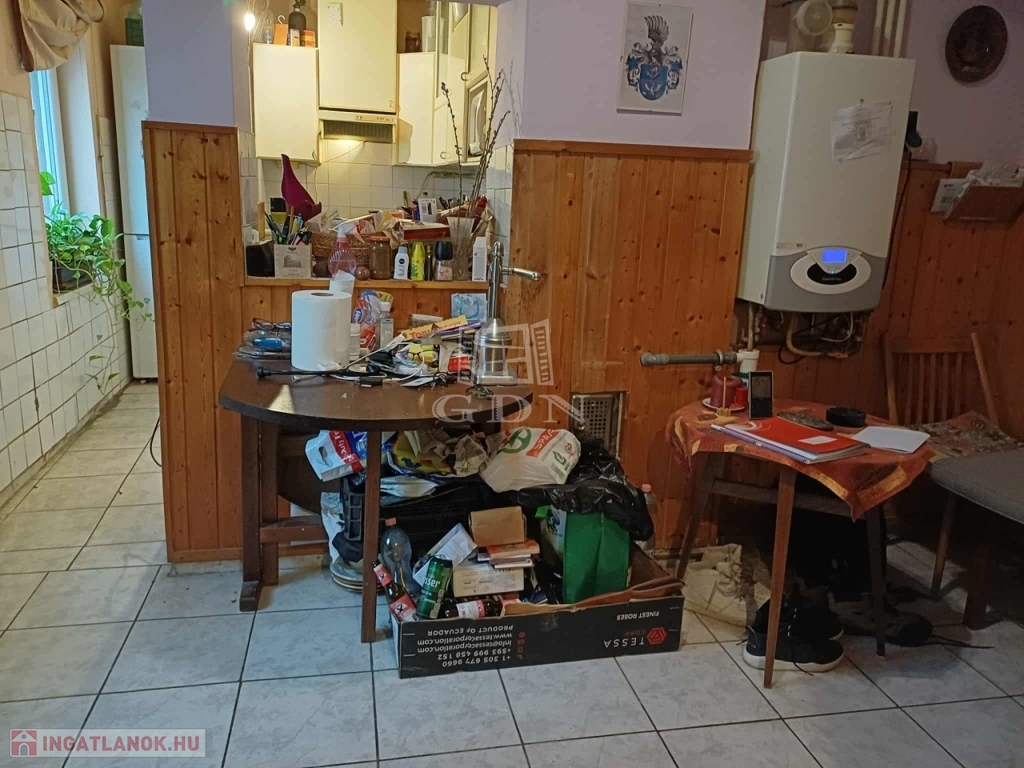 Fűtése gázkazán, ez is és a villany vezetékek is 8 éve cserélve lettek néhány radiátorral együtt. Kertre és utcára is néznek a kicserélt műanyag ablakok. Fürdő és mellékhelység külön van.