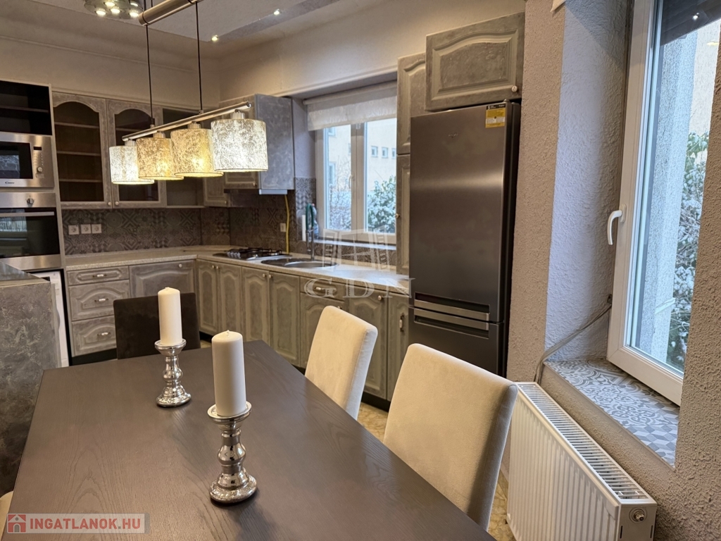 A lakás teljes felszereltséggel, komplett gépesítéssel és bútorzattal együtt eladó.