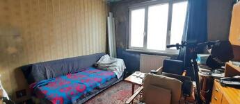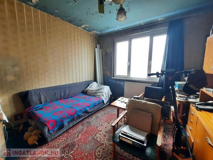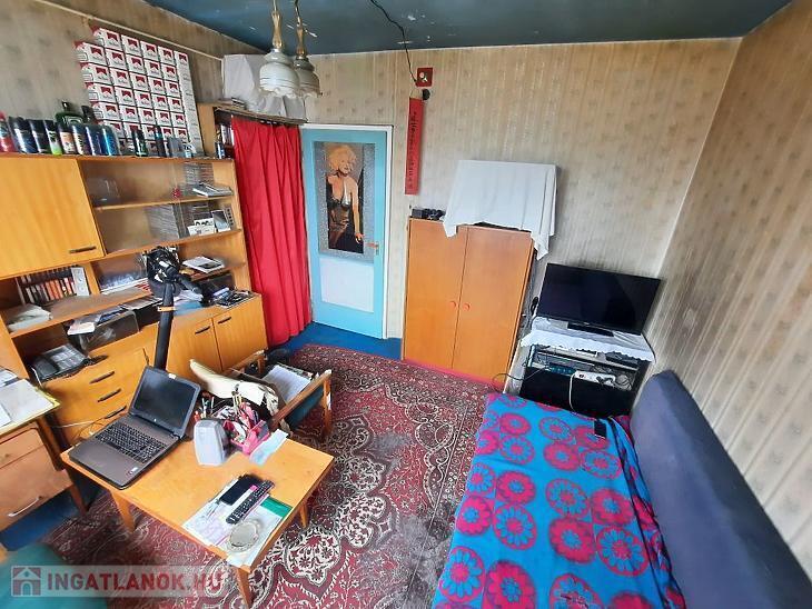 A kisebbik szoba padlószőnyeggel és régi tapétával burkolt, felújítandó, a nagyobbik szobában laminált parketta van, de a tapéta ott is még az régebbi.