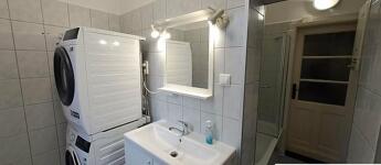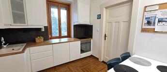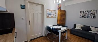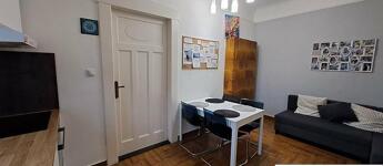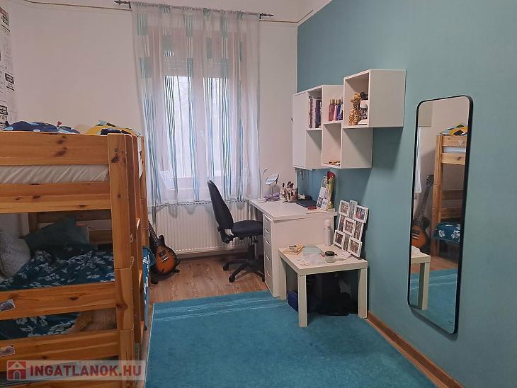 A lakásba belépve elsőként az előszobába térünk, ahonnan nyílik egy hálószoba, a kádas fürdő, külön nyíló wc és az étkezős konyha, ahonnan tovább juthatunk a nagyobb hálószobába. A lakás néhány éve részleges felújításon esett át. Új burkolat a szobákban és az előszobában, többségében ki lettek cserélve a szaniterek, új IKEA konyhabútor, konyhai gépesítés és egy konyhai víztisztító lett beépítve, ami a csapvíznél és az ásványvíznél tisztább, egészségesebb ivóvízről gondoskodik. Az elektromos hálózat felújítása már korábban megtörtént, a teljesítmény 3X16 amperre lett bővítve, amely lehetővé teszi a nagy háztartási gépek egyidejű használatát. Az ablakok modern, 3 rétegű üvegezéssel ellátott faablakok, melyeket fém redőnnyel és szúnyoghálóval szereltek fel. 2022-ben kívülről lett szigetelve a lakás. A gázkazánok javítása folyamatban van. A lakásban megőrzésre került egy cserépkályha, mely télen nem csak hangulatos, de jó meleget is képes biztosítani. A nagyobb szoba nyáron légkondicionálóval hűthető. A konyha gépesítése (mosogatógép, hűtő), a mosógép és a szárító a vételár részét képzi.